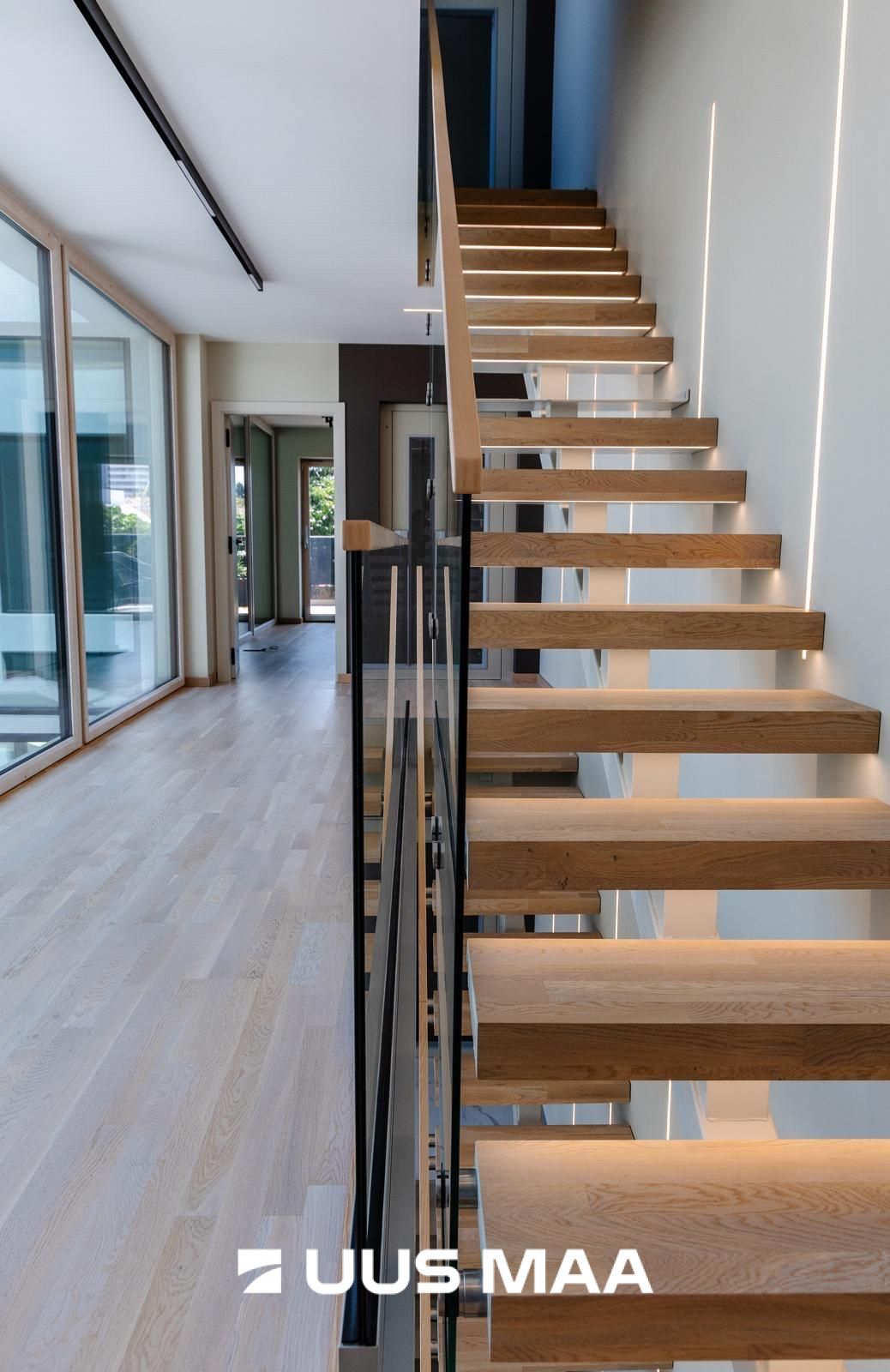 • Terrassi kõrval asub lift ja trepp, mis ühendavad kõiki korruseid.