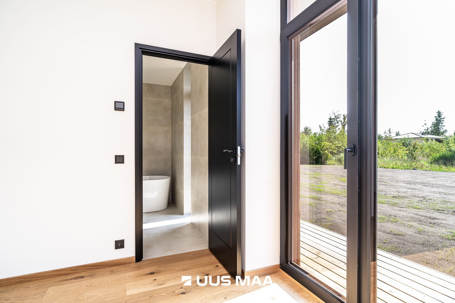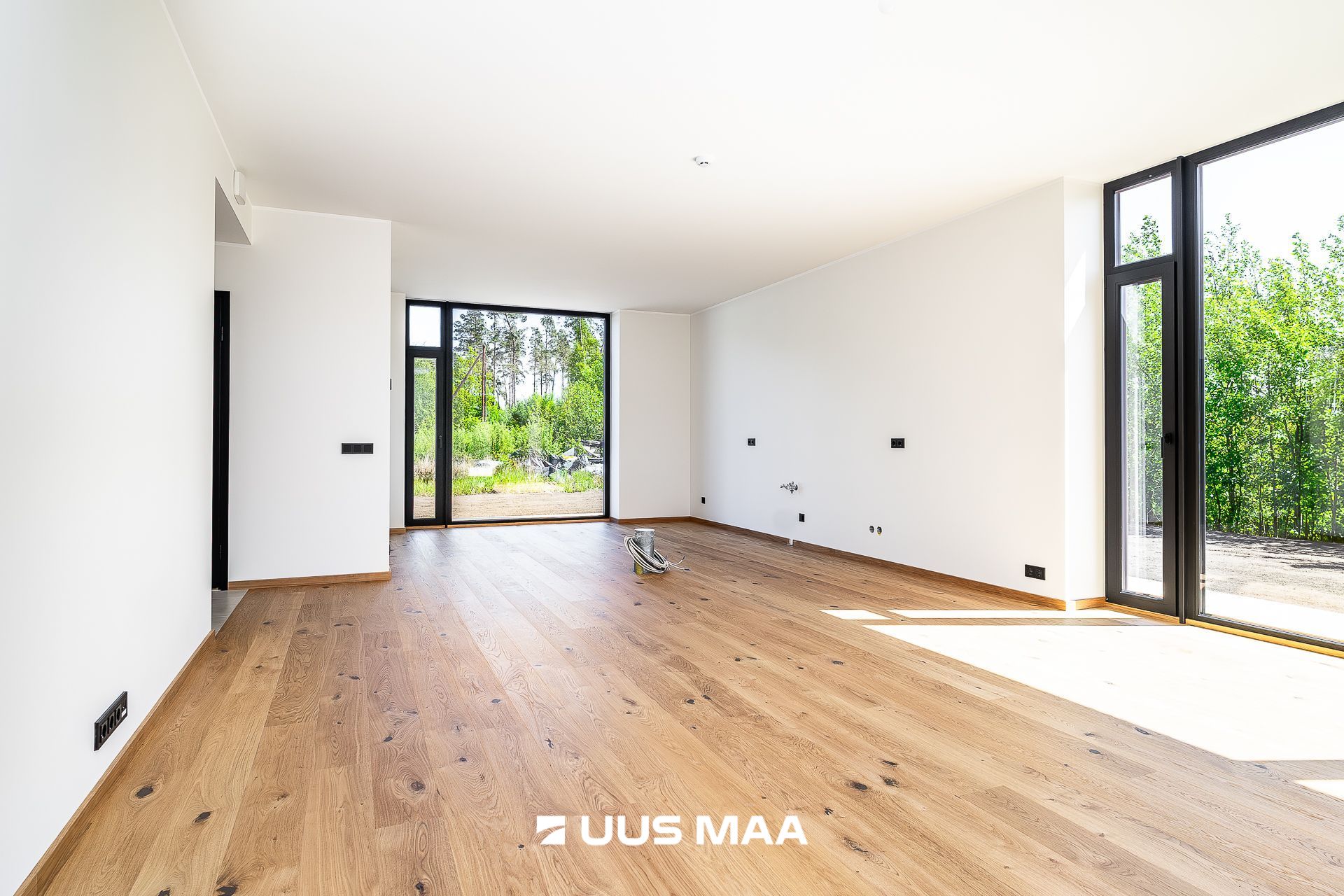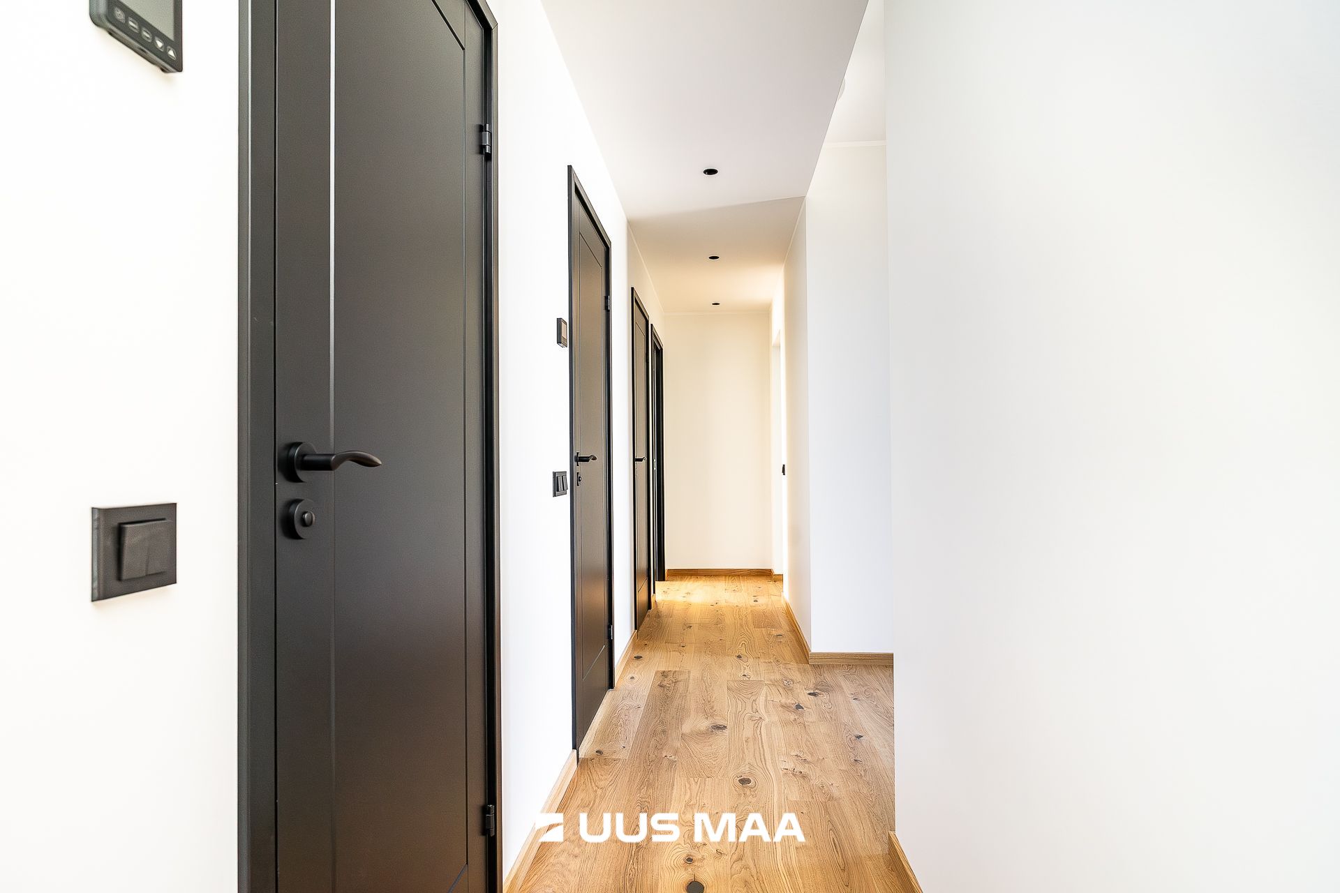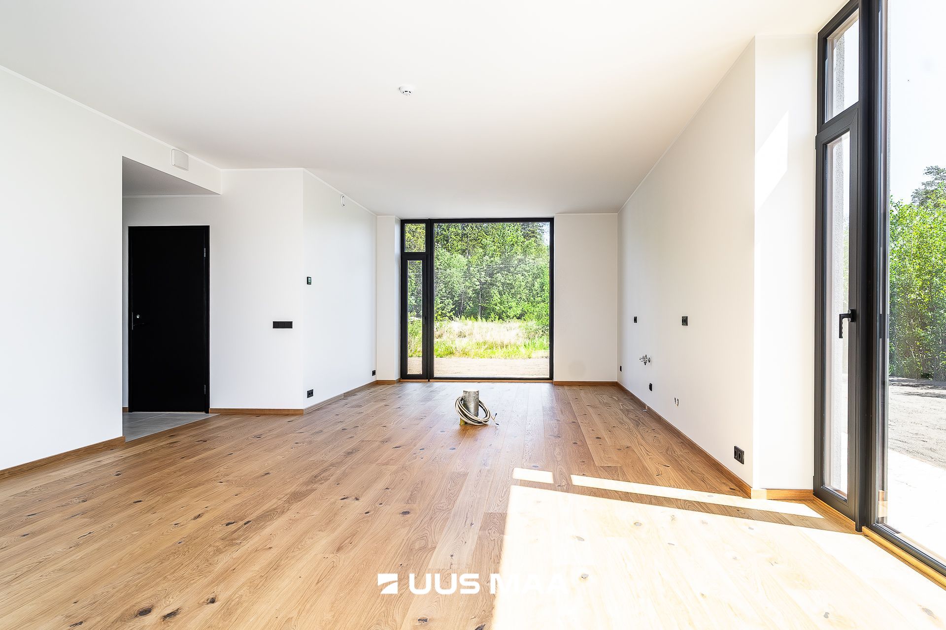 Maja siseviimistluses on rõhk kvaliteedil. Põrandaid katab õlitatud täispuitparkett. Seinte skandinaavialikku heledat põhitooni täiustavad kontrastina musta värvi akna- ja ukseraamid ning spoonitud siseuksed ning pisidetailid.