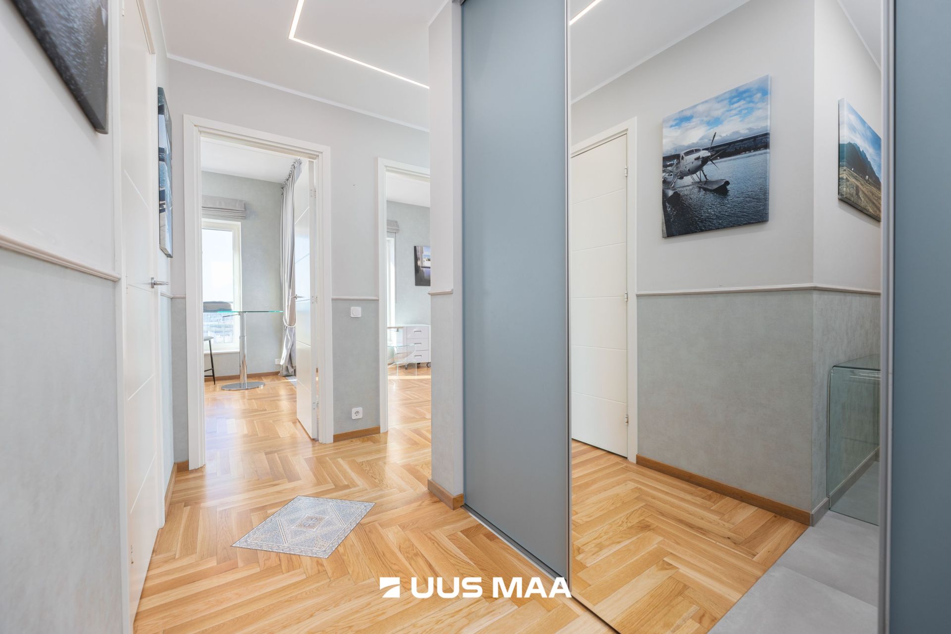 Avaras esikus on mahukas garderoob. Köök ja elutuba on ühendatud avaraks ja valgusküllaseks ruumiks ning varustatud kvaliteetse sisseehitatud tehnikaga. Korteri eriliseks väärtuseks on see, et kõikidest tubadest on pääs rõdule, mis loob avaruse ja pakub mõnusat võimalust nautida värsket õhku igal ajal.