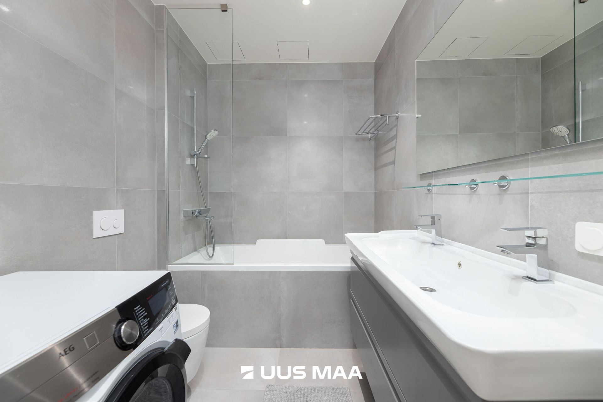 Viimistluses on kasutatud kvaliteetseid materjale, sealhulgas naturaalset parketti. Korteris on kaks vannituba, mis on varustatud kaasaegse sanitaartehnikaga. Lisamugavuseks on põrandaküte: keskküttesüsteemil põhinev vesipõrandaküte.