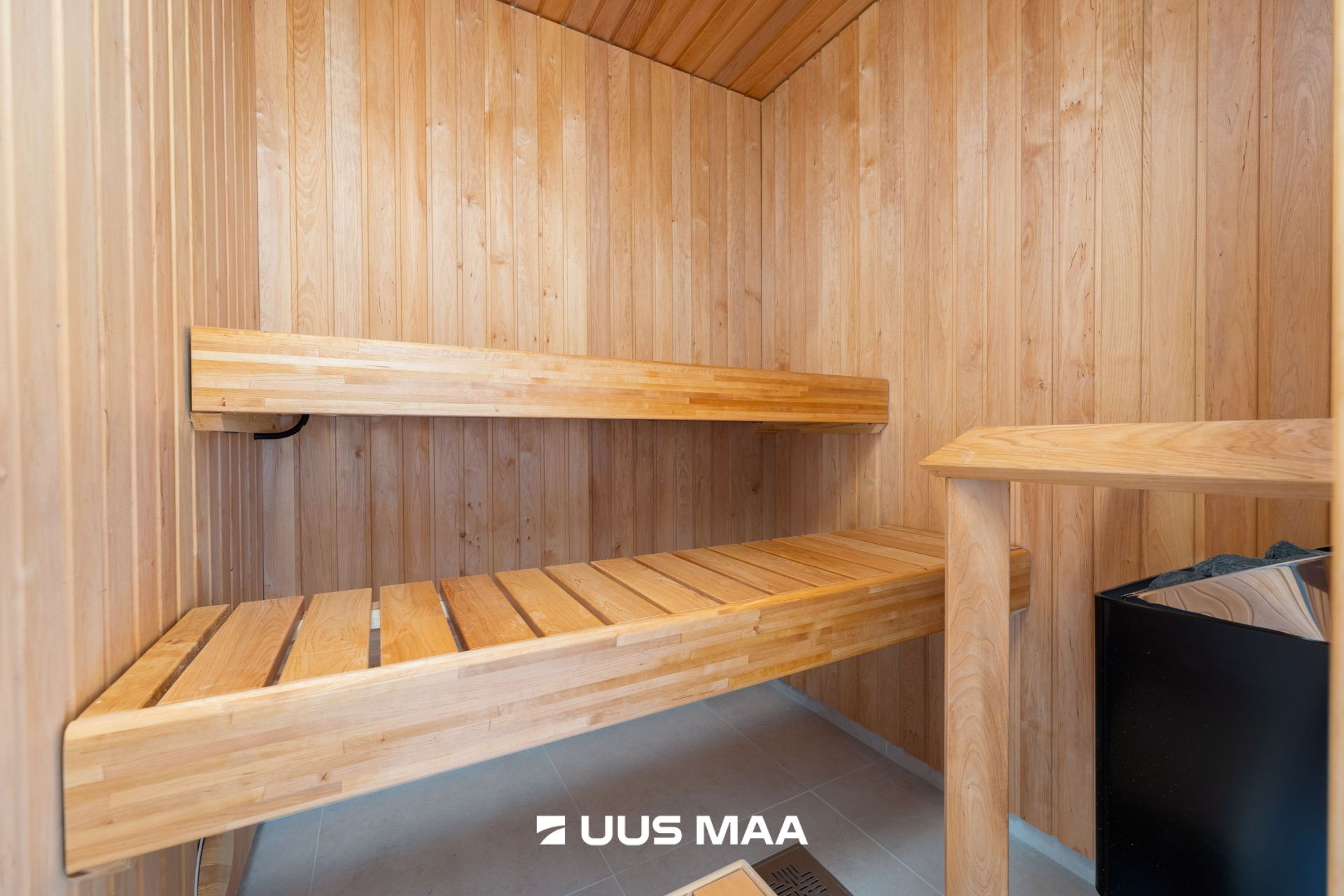 Saun ja terrass: Majas on hubane saun. Pesuruumist ja elutoast pääseb otse suurele, 27,7 m² suurusele katuselusele lõunapoolsele terrassile, mis on ideaalne suvisteks hommikusöökideks või õhtuseks lõõgastuseks.
