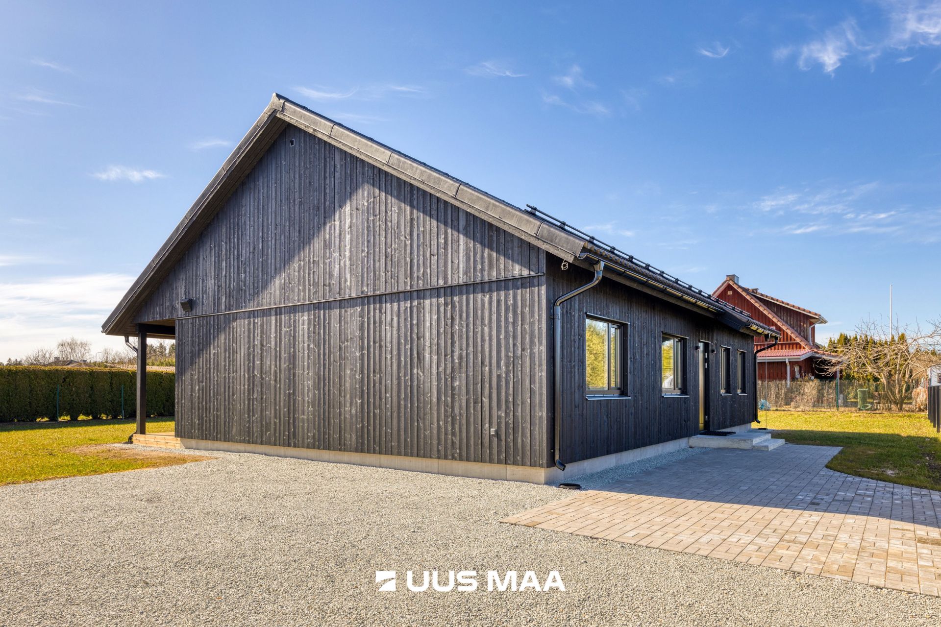 Välisviimistluseks elegantne must vertikaalne laudvooder.