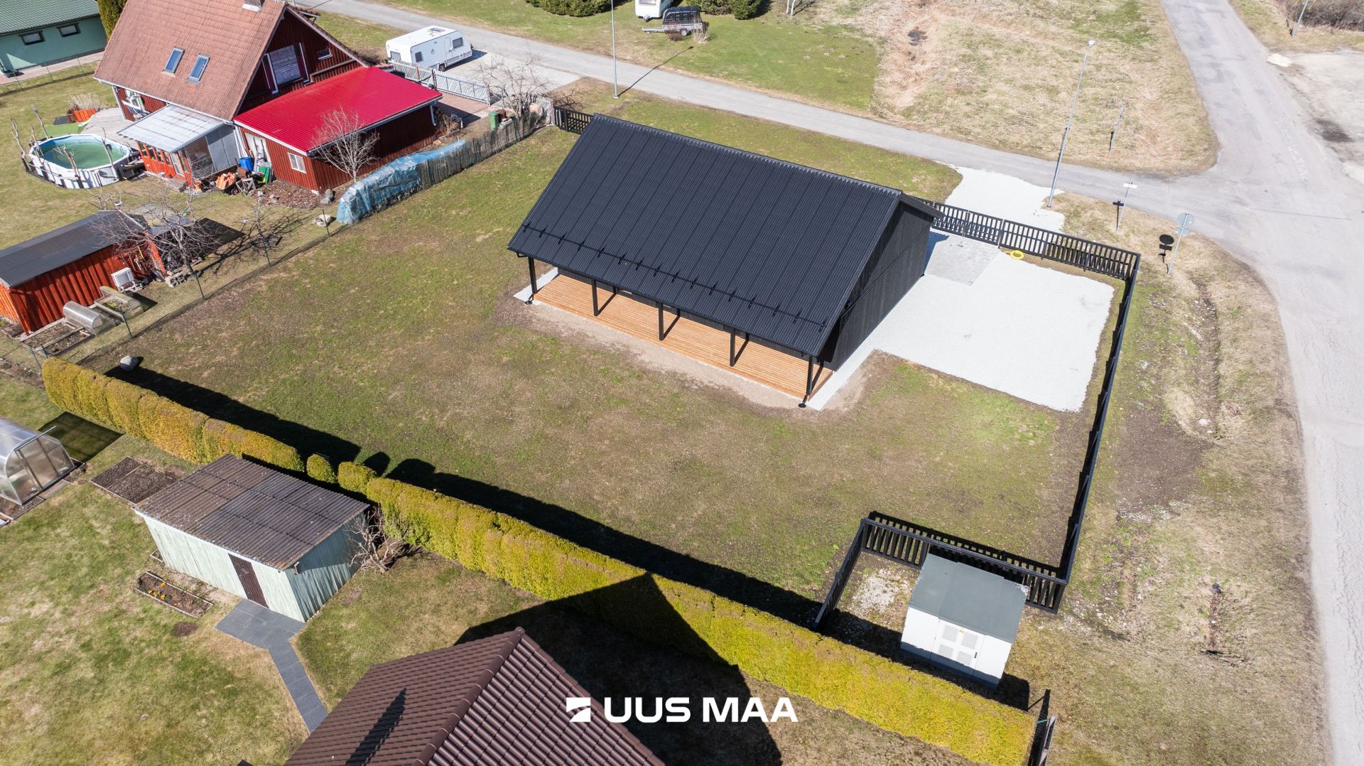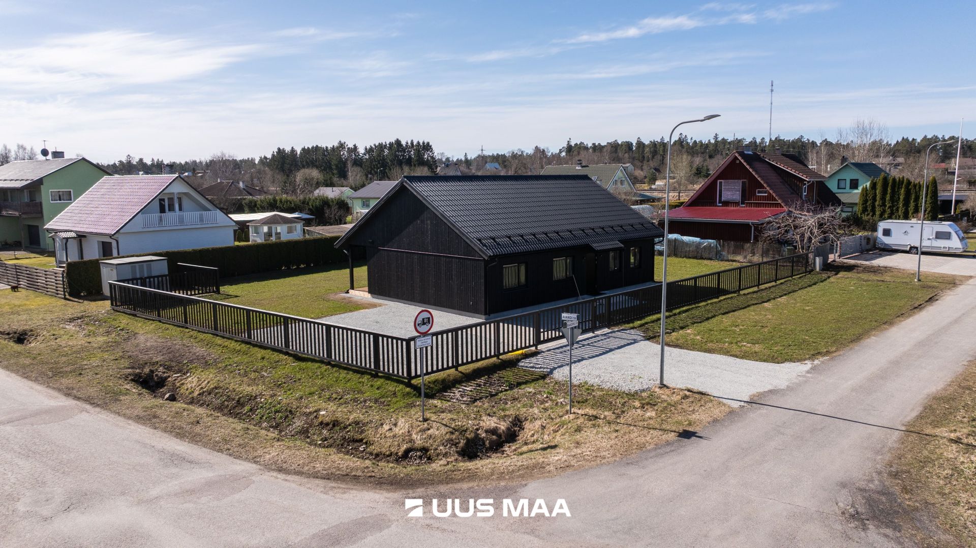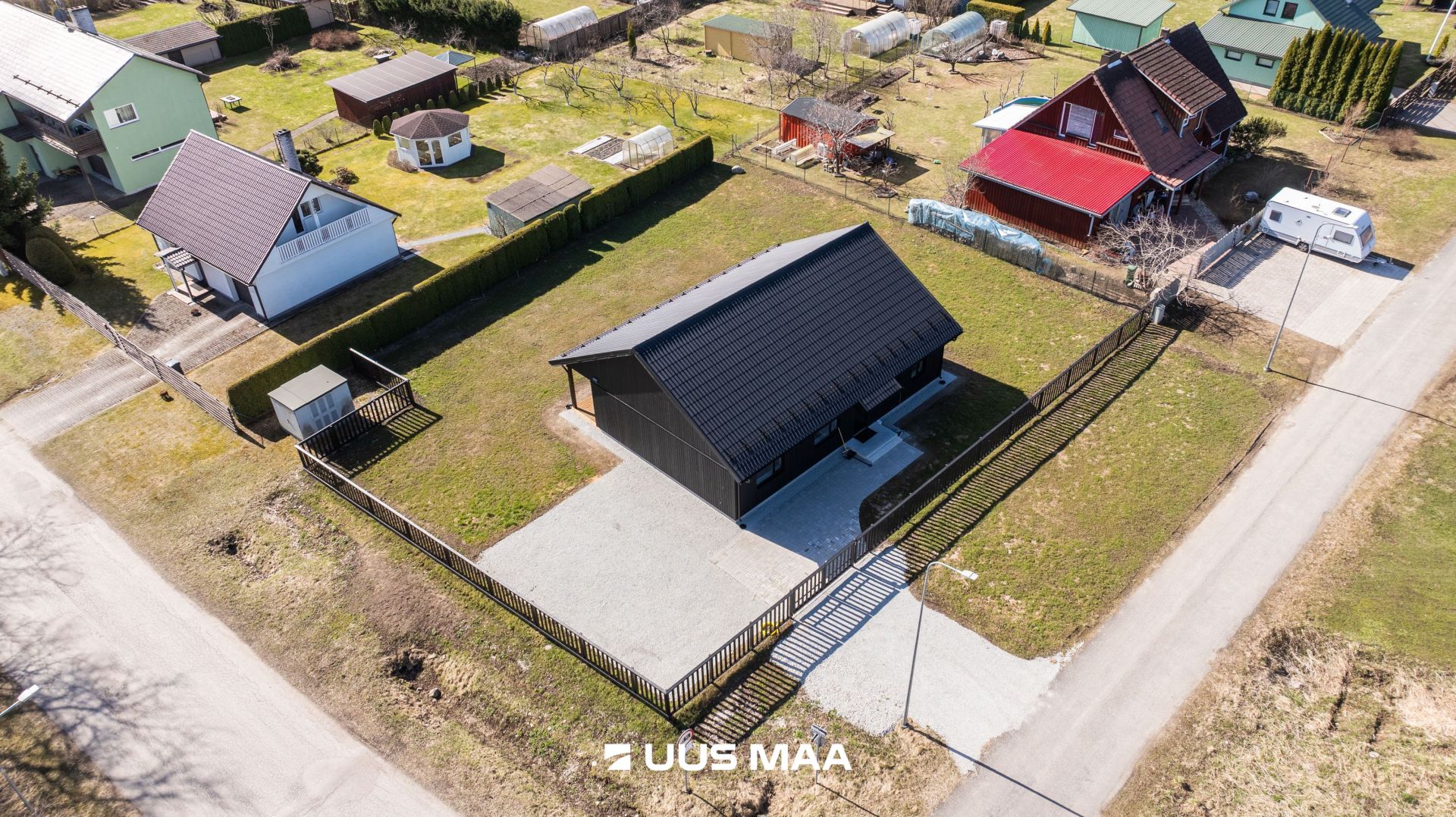 Piirded: Tänavapoolsetel külgedel on 1,5 m kõrgune aed koos mugava jalg- ja autoväravaga.